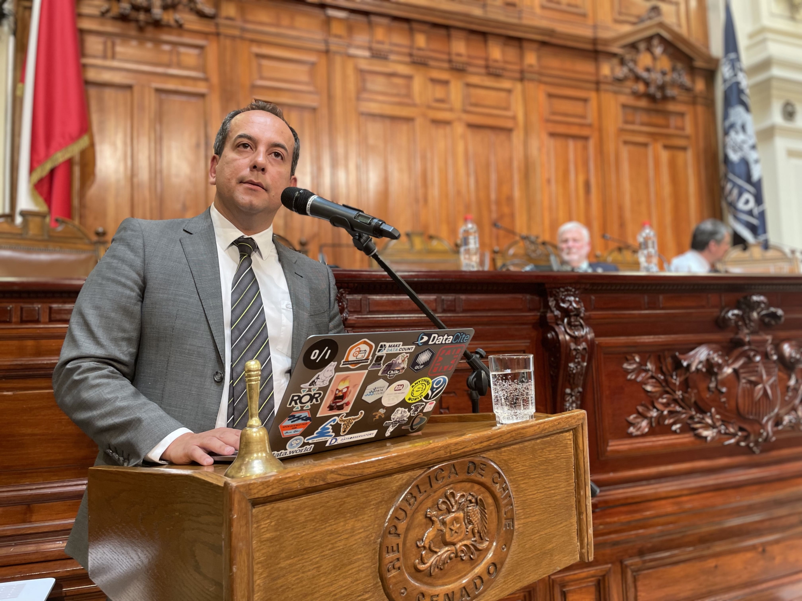 El expositor señaló que la transformación digital del Estado ocurre cuando los datos se administran con claridad, continuidad y propósito. Añadió que: «La transformación del Estado requiere escalar las capacidades existentes, manteniendo el foco no en tecnología sino en gobernanza y en la IA. Nuestra organización apoya e impulsa este proceso mediante infraestructura robusta y escalable, estándares y principios comunes, capacidades humanas especializadas y una red intersectorial, nacional e internacional, que permite utilizar datos públicos y científicos con transparencia y foco en resultados».
